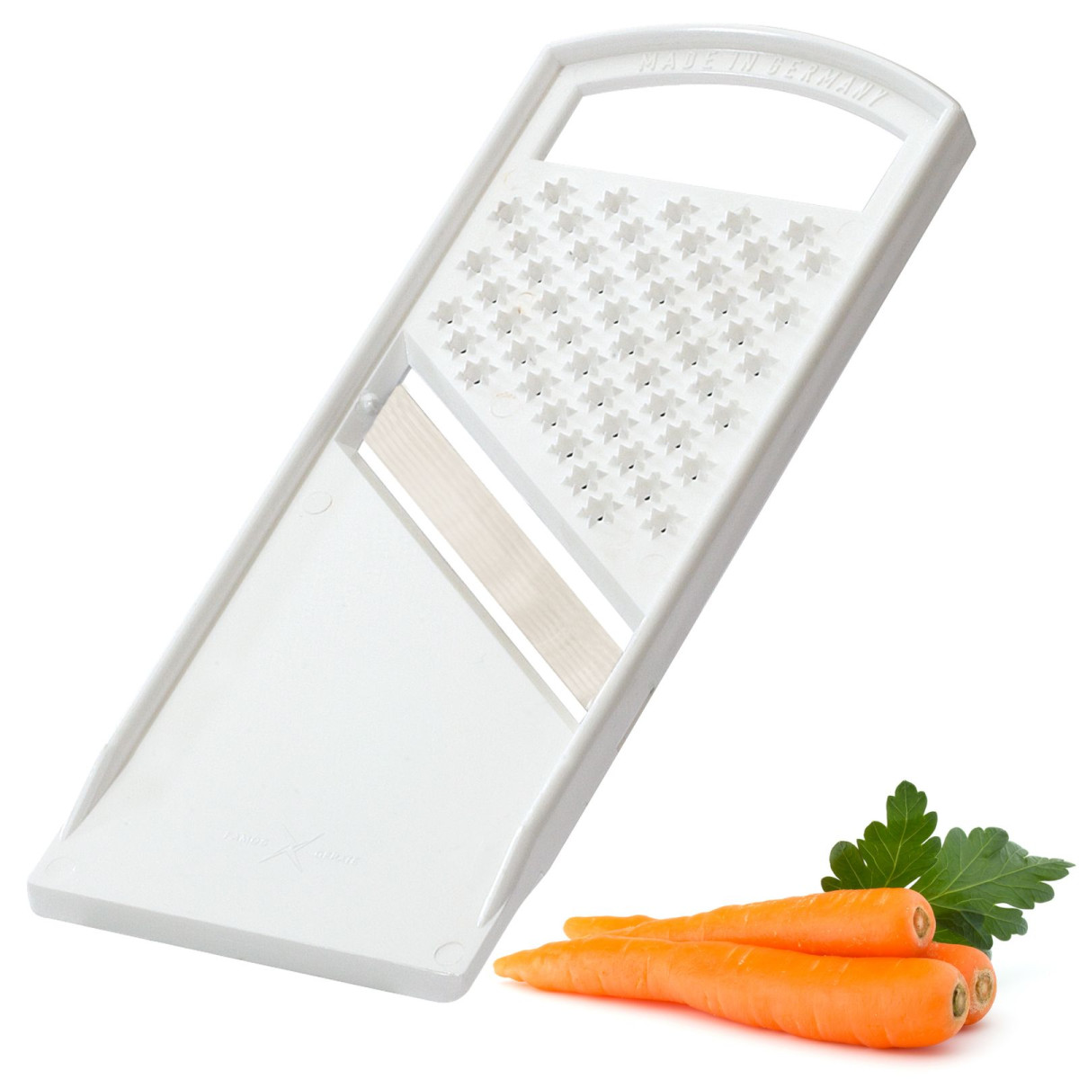Der kleine und handliche Gemüseschneider verfügt über eine beidseitig schneidende Klinge. Er ist geeignet für Käse, Gewürze oder Früchte.