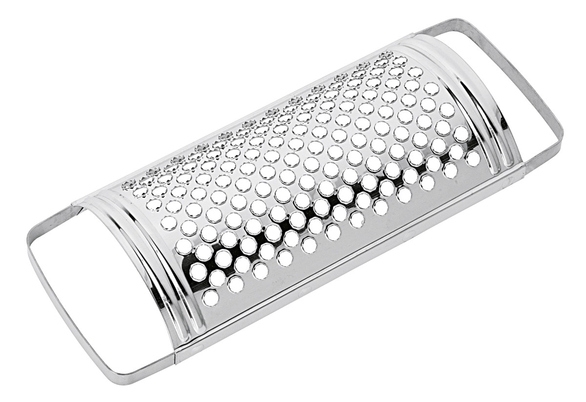 Die Handreibe verfügbt über sehr scharfe rostfreie Kronenklingen aus Edelstal und einer gewölbten Reibefläche, die das mühelose Reiben von hartem Obst und Gemüse (z. B. Äpfel, Kartoffeln, Zwiebeln, Möhren oder auch Hartkäse) ermöglichen. Somit können Sie Speisen wie Reibekuchen, Rohkostsalate und auch Säuglingsnahrung im Nu herstellen. Aufgrund des geringen Gewichts und der großen und schmalen Schlaufe für alle Handgrößen, ist ein sicheres Arbeiten gewährleistet. Material: Edelstahl rostfrei. Spülmaschinengeeignet.
