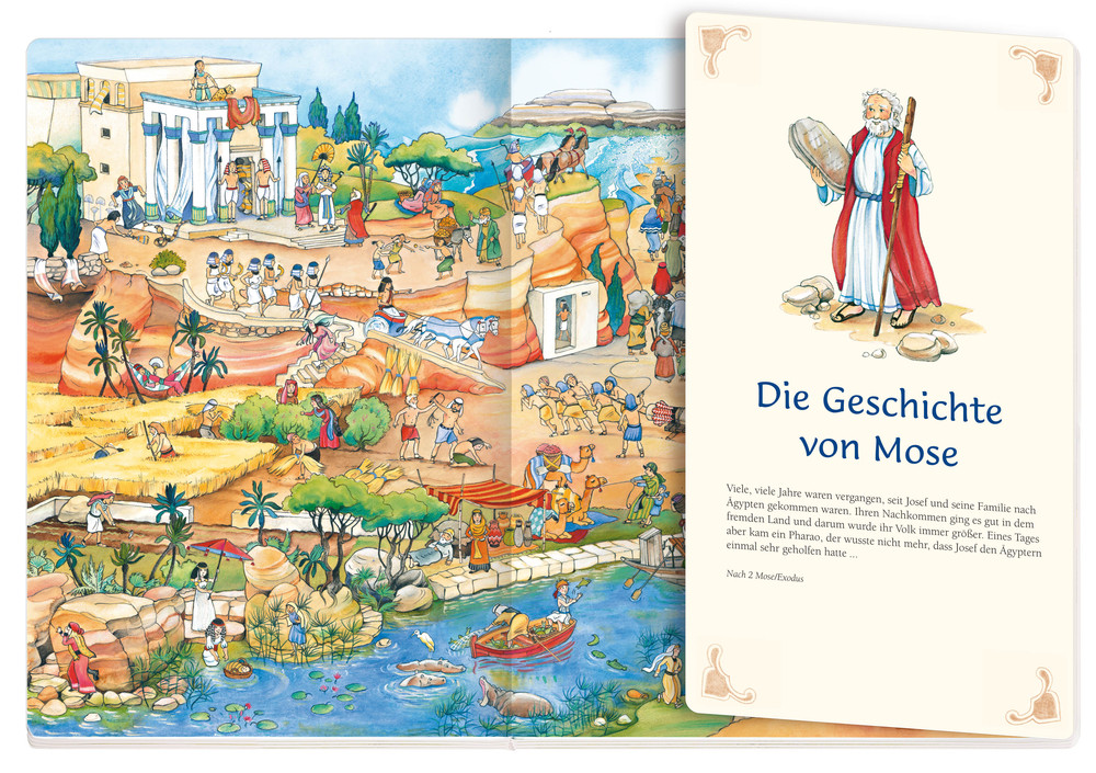 Mit lebhaften, großformatigen Wimmelbildern und leicht verständlichen Texten erzählen Melanie Brockamp und Antonie Schneider die schönsten und bekanntesten Geschichten aus dem Alten- und dem Neuen Testament: vom Anfang der Welt bis hin zum Ostermorgen und der Auferstehung. Dieses großformatige Pappbilderbuch mit sechs Ausfaltseiten bietet einen spielerischen Einstieg in die bunte Welt der Bibel und begeistert die ganze Familie!. Geschlecht: | empf. Mindestalter: 3 Jahr(e) | Preisbindung: J | Textilkennzeichnung: | Pflegekennzeichnung: | Sprache(n) Gebrauchsanweisung: DE,ES,FR,IT,NL,PL,US | Sprache(n) Warnhinweise: | Zolltarifnummer: 49030000 | Ursprungsland: CHINA