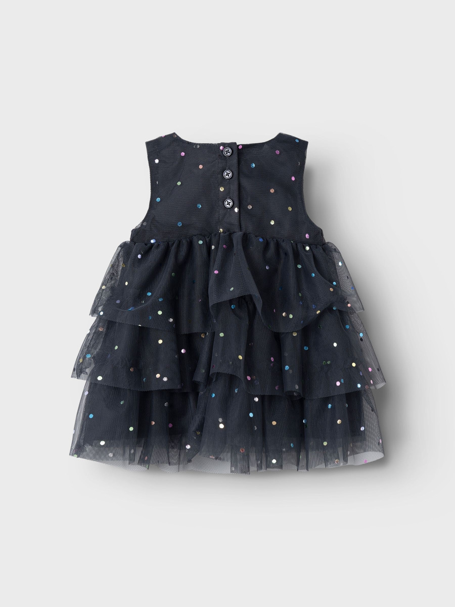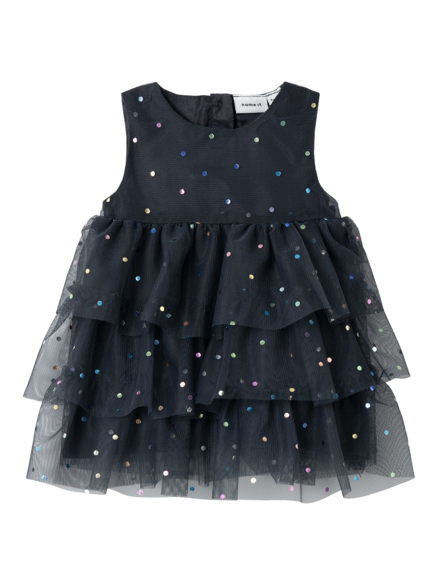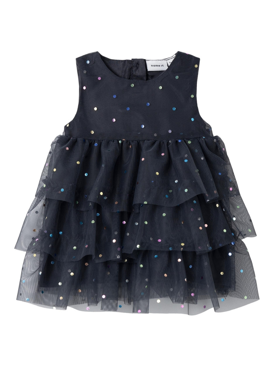 Mit diesen lustigen und glamourösen Partystyles ist dein Kind das ganze Jahr über für Feste, Partys und besondere Anlässe gerüstet. Tüll ist ein leichter Stoff mit einer netzartigen Struktur und einem eleganten Look.- Detailart : Ärmelloses Kleid- Ausschnitt : Rundhalsausschnitt- Ärmel : Lange Ärmel (L/S)- Verschluss : Knopfverschluss- Innenfutter : Undurchsichtiges Polyesterfutter- Print : Glänzender Folienprint- Passform : Regular Fit