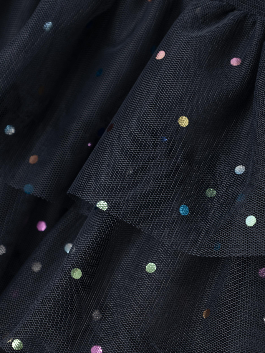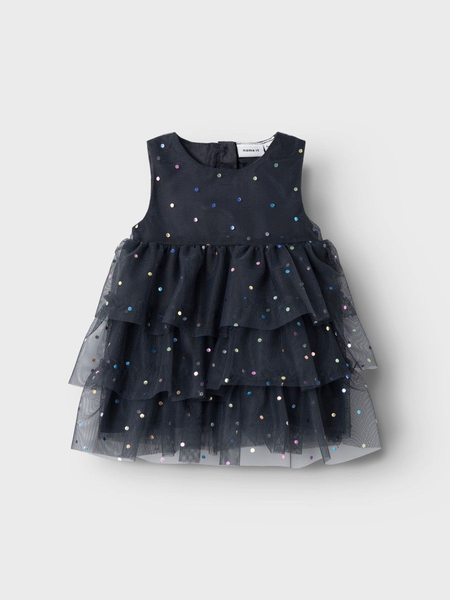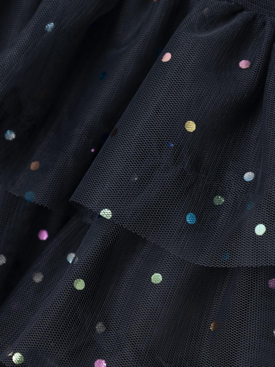 Mit diesen lustigen und glamourösen Partystyles ist dein Kind das ganze Jahr über für Feste, Partys und besondere Anlässe gerüstet. Tüll ist ein leichter Stoff mit einer netzartigen Struktur und einem eleganten Look.- Detailart : Ärmelloses Kleid- Ausschnitt : Rundhalsausschnitt- Ärmel : Lange Ärmel (L/S)- Verschluss : Knopfverschluss- Innenfutter : Undurchsichtiges Polyesterfutter- Print : Glänzender Folienprint- Passform : Regular Fit