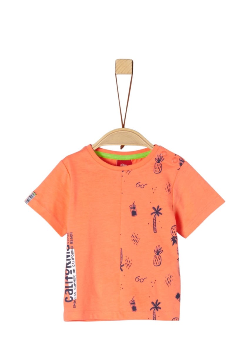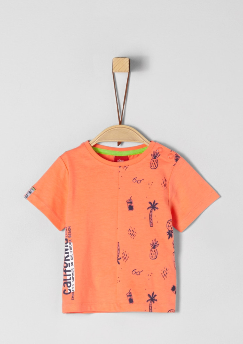 vorn mit vertikaler Teilungsnaht und sommerlichen Print-Motiven, Rundhalsausschnitt mit feiner Rippblende und zwei seitlichen Druckknöpfen, bequeme Passform, Jersey aus reiner Baumwolle