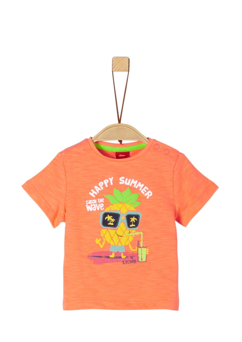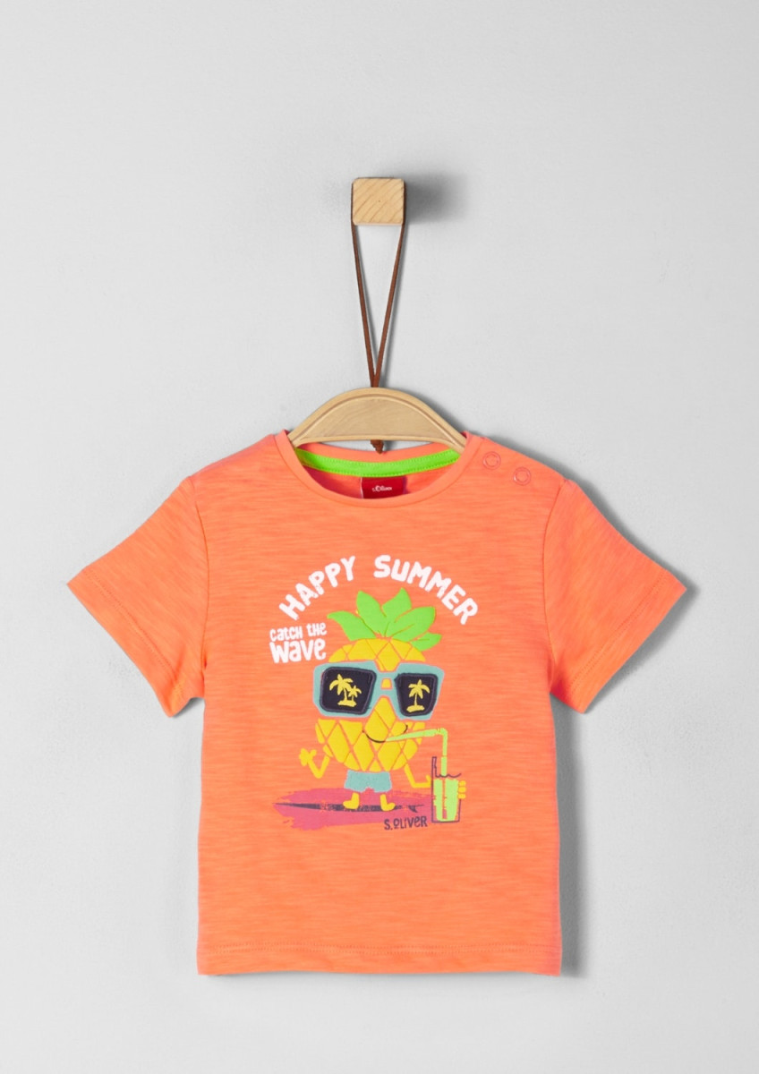 gummierter Print mit beweglichen Applikationen auf der Vorderseite, Rundhalsausschnitt mit schmaler Rippblende und zwei seitlichen Druckknöpfen, feine Flammgarnstruktur, bequeme Passform, Jersey aus reiner Baumwolle