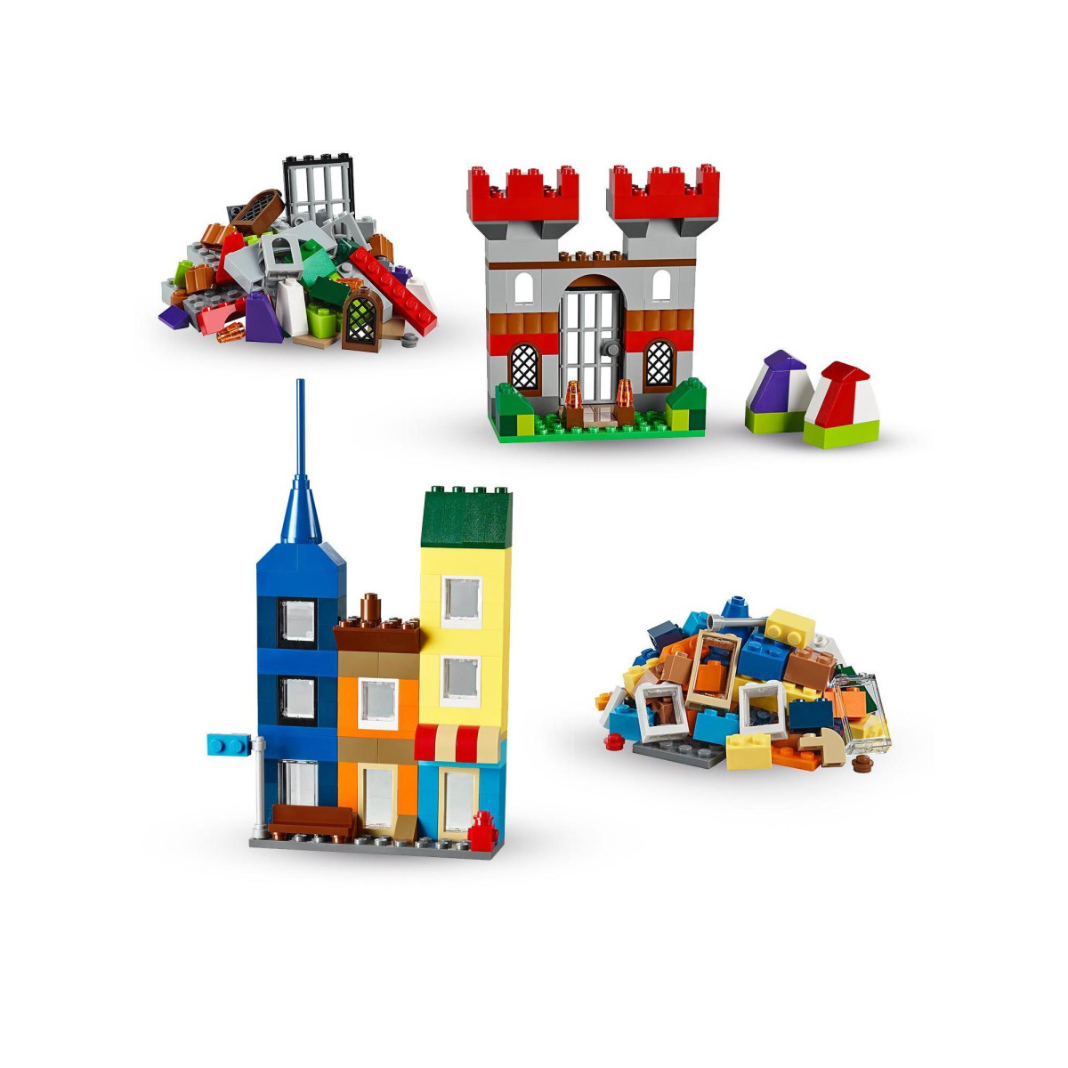 Kleine Baumeister können sich mit dieser großen Box mit klassischen LEGO®-Bausteinen in 33 verschiedenen Farben kräftig austoben. Mit vielen verschieden Fenstern und Türen sowie anderen besonderen Teilen, die die Inspiration anregen, können Kinder ihrer Fantasie freien Lauf lassen. Dieses Lego-Set enthält Bauanleitungen mit ersten Ideen und ist der perfekte kreative Bausatz für angehende Baumeister jeden Alters, die Spaß am klassischen Bauen mit LEGO haben. Die LEGO Classic 10698 Große Bausteine-Box wird in einer praktischen Aufbewahrungsbox aus Plastik geliefert und ist eine ideale Ergänzung zu jeder bestehenden LEGO-Kollektion und eine tolle Geschenkidee für Jungen und Mädchen ab 4 Jahren. Die grünen Grundplatten haben die folgenden Maße: Länge: 12 cm, Breite: 12 cm bzw. Länge: 9 cm, Breite: 4 cm. | | Bulletpoints: • Spielzeug-Bausteine für Kinder ab 4 Jahren, enthält große Palette an LEGO-Bausteinen in 33 verschiedenen Farben, 8 verschieden Arten von Fenstern und Türen, 8 verschiedene Rahmen | • Die speziellen Teile umfassen 2 verschieden große grüne Grundplatten, 3 Augenpaare, 6 Reifen und 6 Felgen – als Anregung für fantasievolles Bauen | • Die LEGO Classic 10698 Große Bausteine-Box wird in praktischer Aufbewahrungsbox aus Plastik geliefert, alle abgebildeten Modelle können mit diesem Set gleichzeitig gebaut werden | • Die Große Bausteinbox von LEGO ist eine unterhaltsame Geschenkidee für Mädchen und Jungen ab 4 Jahren und bereitet lange viel Freude | • Eine große Anzahl an Fenstern und Türen unterstützt das klassische LEGO-Bauen und sorgt für endlose Kreativität mit den LEGO-Bausteinen | • Bauanleitungen mit ersten Ideen sind im Set enthalten und online auf LEGO.com/classic zu finden | • In den Bauanleitungen, die dem Set beiliegen, sowie auf LEGO.com/classic findest du Ideen, die dir den Einstieg erleichtern. | • Das Set ist in einer praktischen Kunststoff-Aufbewahrungsbox verpackt.. Lizenz: LEGO® Classic | Geschlecht: Junge | empf. Mindestalter: 4 Jahr(e) | empf. Höchstalter: 99 Jahr(e) | Zolltarifnummer: 95030035 | Ursprungsland: DÄNEMARK | Sprache(n) Gebrauchsanweisung:ZX | Sprache(n) Warnhinweise: DE, ES, FR, GB, GR, IT, NL