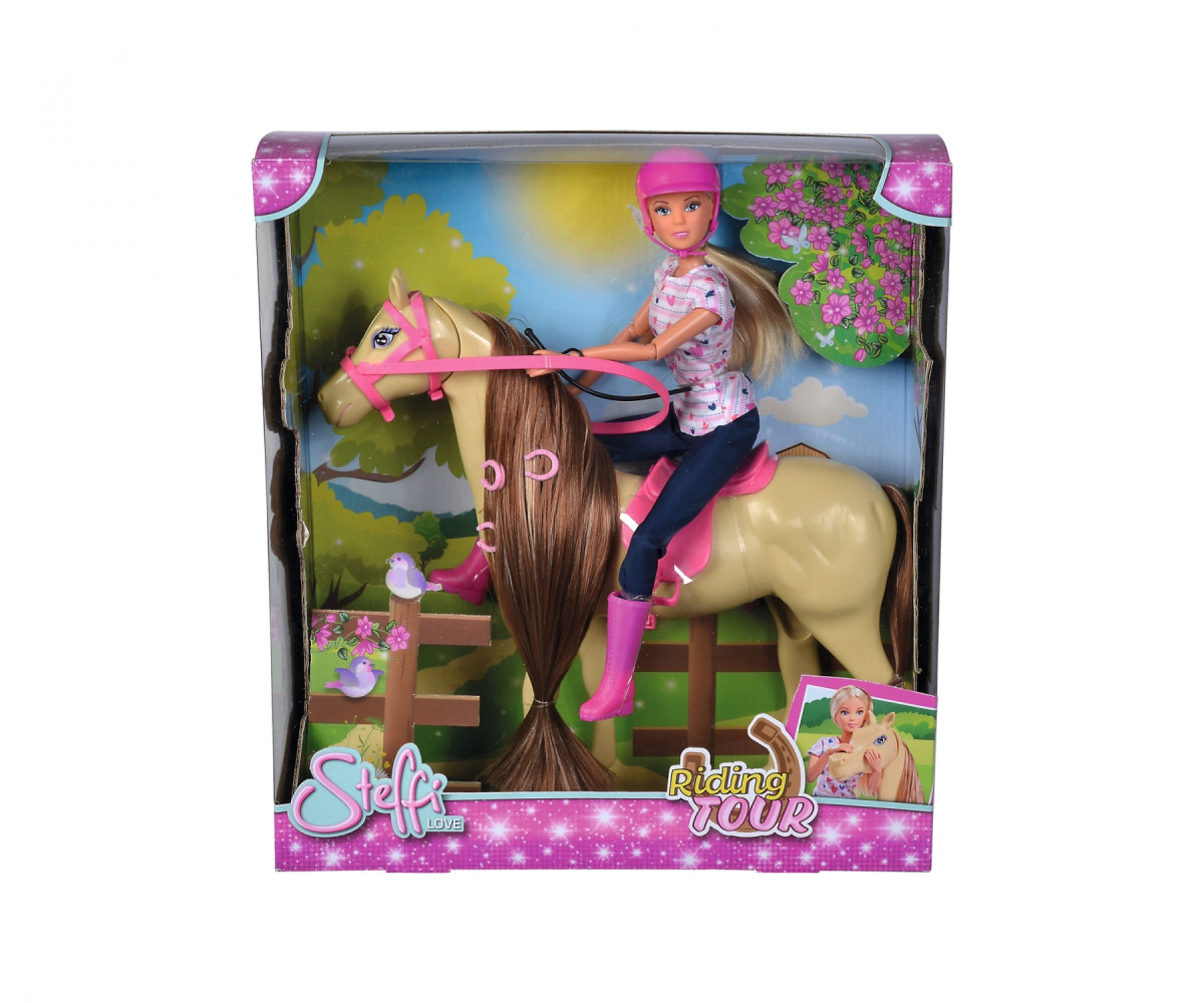 SL Reitausflug: Steffi genießt den tollen Reitausflug mit ihrem Pferd. Steffi ist voll beweglich und trägt ein modisches Reitoutfit. Für Kinder ab 3 Jahren geeignet. | vollbewegliche Steffi im modischen Reitoutfit mit ihrem Pferd, L:27cm, 29cm, WB, 3J+ |. Geschlecht: Mädchen | Spieleranzahl: - | empf. Mindestalter: 3 Jahr(e) | empf. Höchstalter: 9 Jahr(e) | Zolltarifnummer: 95030070000 | Ursprungsland: CHINA