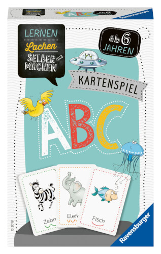 ABC | Beim Kartenspiel „ABC“ lernen die Spieler alle Buchstaben des ABC kennen und verbinden sie mit ihrem Laut, z.B. A wie A-ffe. Nach dem Schwarzer Peter- Spielprinzip werden Paare aus je einem Buchstaben und einem Anlautbild gesammelt und abgelegt. Wer am Ende die „Schwarze Witwe“ behält, hat verloren. Für Abwechslung und immer wieder neuen Spielspaß sorgen die Varianten „Silbensieg“ und „Paare finden“. Die Karten bieten insgesamt drei Spielmöglichkeiten für 1-4 Spieler ab 6 Jahren. Für Abwechslung und immer wieder neuen Spielspaß sorgen die Varianten „Silbensieg“ und „Paare finden“. Das Kinderspiel für 1-4 Spieler ist eine tolle Beschäftigung für Zuhause und perfekt geeignet als Geburtstagsgeschenk oder Weihnachtsgeschenk für Kinder ab 6 Jahren. Der spannende Lernspaß mit lustigen Illustrationen und witzigen Aktionskarten ist optimal für Vor- und Grundschulkinder. | Beim Kartenspiel „ABC“ lernen die Spieler alle Buchstaben des ABC kennen und verbinden sie mit ihrem Laut, z.B. A wie A-ffe. Nach dem Schwarzer Peter- Spielprinzip werden Paare aus je einem Buchstaben und einem Anlautbild gesammelt und abgelegt. Wer am Ende die „Schwarze Witwe“ behält, hat verloren. Für Abwechslung und immer wieder neuen Spielspaß sorgen die Varianten „Silbensieg“ und „Paare finden“. Die Karten bieten insgesamt drei Spielmöglichkeiten für 1-4 Spieler ab 6 Jahren. | - Lernen und Lachen gehören hier zusammen: Bei 'ABC' lernen die Spieler alle Buchstaben kennen und verbinden sie mit ihrem Laut, z.B. A wie Affe. Nach dem Schwarzer Peter- Spielprinzip werden Paare aus je einem Buchstaben und einem Anlautbild gesammelt un, - Ein tolles Lernspiel mit großem Spielspaß: Wer am Ende die „Schwarze Witwe“ behält, hat verloren, - Die Spielvarianten „Silbensieg' und 'Paare finden“ sorgen für Abwechslung und immer wieder neuen Spielspaß. Das Kennenlernen aller Buchstaben des ABCs wird gefördert, - Das Kinderspiel für 1-4 Spieler – eine tolle Beschäftigung für Zuhause. Perfekt geeignet als Geburtstagsgeschenk oder Weihnachtsgeschenk für Kinder ab 6 Jahren, - Der spannende Lernspaß mit lustigen Illustrationen und witzigen Aktionskarten ist optimal für Vor- und Grundschulkinder. Das kompakte Format eignet sich besonders gut zum Mitnehmen. Lizenz: | Serie: Spiele | Preisbindung: N | Verkaufsverpackung: Karton | Geschlecht: Unisex | Spieleranzahl: 1 - 4 | Spieldauer: ca. 10 min | empf. Mindestalter: 6 Jahr(e) | empf. Höchstalter: 7 Jahr(e) | Zolltarifnummer: 95049080 | Ursprungsland: TSCHECHISCHE REPUBLIK | Sprache(n) Verpackung: DE | Sprache(n) Gebrauchsanweisung: DE