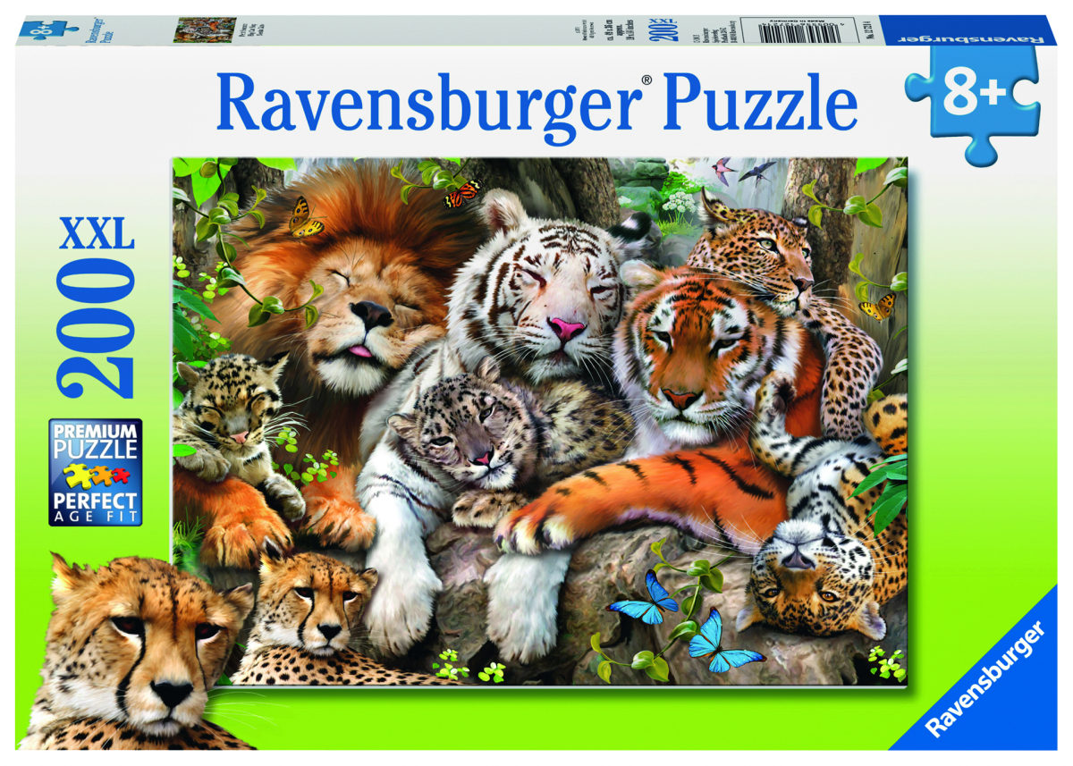 Schmusende Raubkatze 200p | Altersgerechter Puzzlespaß im XXL-Format: Ein Tauchgang in bunte Unterwasserwelten, eine Zeitreise ins Land der Dinosaurier, eine Entdeckungstour in die Heimat von Tiger, Elefant & Co, oder ein zauberhaftes Abenteuer im Einhornland - Puzzleteil für Puzzleteil können Kinder in fantastische Welten eintauchen und staunen! Unsere Puzzles werden in exzellenter Verarbeitungsqualität mit Material aus nachhaltiger Forstwirtschaft gefertigt. Pädagogisch wertvoll und mit ganz viel Lernspaß.Teile suchen, anfügen und sich über das immer größer werdende Bild freuen - Puzzeln ist, wenn sich ein Erfolg an den anderen reiht. Deshalb lieben Kinder es, die Puzzleteile immer wieder zu ihren Lieblingsmotiven zusammen zu setzen. Doch Puzzles bieten mehr als Spaß: Mit der richtigen Schwierigkeit gewählt, lassen sie Kinder jeden Alters an den Herausforderungen wachsen, erhöhen ihre Geduld und stärken ihr Selbstvertrauen. In der großen Auswahl von Ravensburger Kinderpuzzles mit den beliebtesten Motiven, von 2 Teilen bis 300 Teilen, ist garantiert für jedes Kind das Richtige dabei. Die Auswahl der Motive und die hohe Qualität unserer Kinderpuzzles liegen uns sehr am Herzen. Deshalb wird die Unbedenklichkeit aller Materialien von einem unabhängigen Institut bestätigt. Seit mehr als 100 Jahren entwickeln wir Puzzles, wie Kinder sie lieben: altersgerecht in Motiv, Teilezahl und -größe. | Altersgerechter Puzzlespaß im XXL-Format: Ein Tauchgang in bunte Unterwasserwelten, eine Zeitreise ins Land der Dinosaurier, eine Entdeckungstour in die Heimat von Tiger, Elefant & Co, oder ein zauberhaftes Abenteuer im Einhornland - Puzzleteil für Puzzleteil können Kinder in fantastische Welten eintauchen und staunen! Unsere Puzzles werden in exzellenter Verarbeitungsqualität mit Material aus nachhaltiger Forstwirtschaft gefertigt. Pädagogisch wertvoll und mit ganz viel Lernspaß. | - Bunter Puzzlespaß für große und kleine Kinder! Mit der Ravensburger Motivvielfalt der XXL Kinderpuzzles tauchen Mädchen und Jungen in fantastische Welten, puzzeln ihre Lieblingstiere und -charaktere oder lernen neue Länder und Kontinente kennen, - Ravensburger Kinderpuzzle sind das beste Geschenk zu jedem Anlass: Geburtstag, Weihnachten, Ostern oder einfach als tolle Freizeitbeschäftigung, - Kinderpuzzles sind das ideale Spielzeug für Kinder jeden Alters: Puzzles unterstützen spielerisch die Entwicklung der Kinder und wirken sich positiv auf Motorik und Konzentration aus, - Ravensburger Qualitätsprodukte bestehen aus extradickem, langlebigem Material und ermöglichen so langen Puzzlespaß. Die Größe der Puzzleteile ist der Altersangabe angepasst und liegen den kleinen Puzzlern gut in der Hand, - Das Produkt beinhaltet ein 200 XXL Teile Ravensburger Kinderpuzzle im Format 49 x 36 cm für Mädchen und Jungen ab 8 Jahren. Lizenz: | Serie: Puzzles | Preisbindung: N | Verkaufsverpackung: Karton | Geschlecht: Unisex | Spieleranzahl: - | Spieldauer: ca. min | empf. Mindestalter: 8 Jahr(e) | empf. Höchstalter: 99 Jahr(e) | Zolltarifnummer: 95030069 | Ursprungsland: DEUTSCHLAND, BUNDESREPUBLIK | Sprache(n) Verpackung: DE, NL, EN, FR, IT, ES | Sprache(n) Gebrauchsanweisung: DE,EN,FR,ES,IT,NL