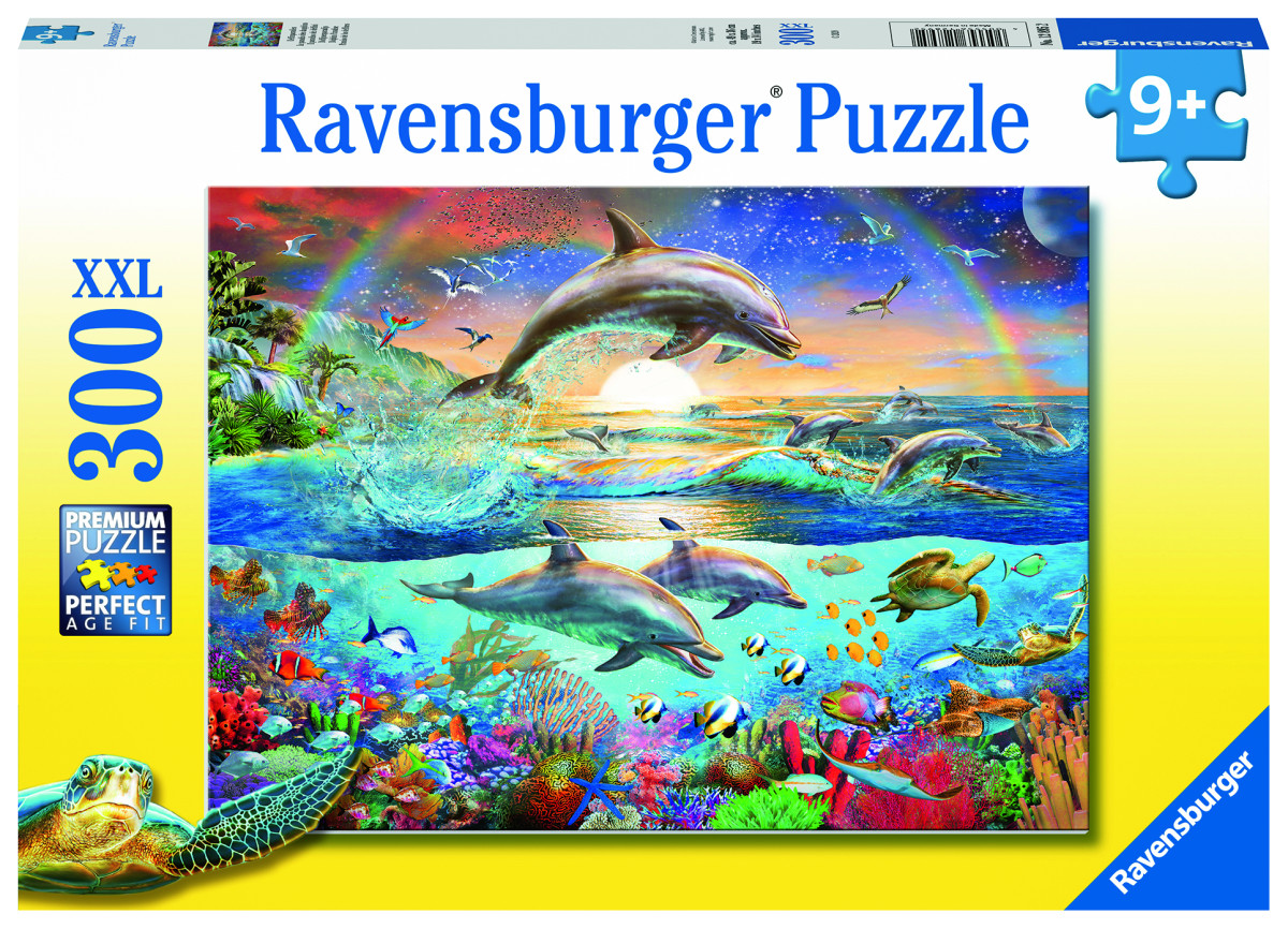 Delfinparadies 300p | Altersgerechter Puzzlespaß im XXL-Format: Ein Tauchgang in bunte Unterwasserwelten, eine Zeitreise ins Land der Dinosaurier, eine Entdeckungstour in die Heimat von Tiger, Elefant & Co, oder ein zauberhaftes Abenteuer im Einhornland - Puzzleteil für Puzzleteil können Kinder in fantastische Welten eintauchen und staunen! Unsere Puzzles werden in exzellenter Verarbeitungsqualität mit Material aus nachhaltiger Forstwirtschaft gefertigt. Pädagogisch wertvoll und mit ganz viel Lernspaß.Teile suchen, anfügen und sich über das immer größer werdende Bild freuen - Puzzeln ist, wenn sich ein Erfolg an den anderen reiht. Deshalb lieben Kinder es, die Puzzleteile immer wieder zu ihren Lieblingsmotiven zusammen zu setzen. Doch Puzzles bieten mehr als Spaß: Mit der richtigen Schwierigkeit gewählt, lassen sie Kinder jeden Alters an den Herausforderungen wachsen, erhöhen ihre Geduld und stärken ihr Selbstvertrauen. In der großen Auswahl von Ravensburger Kinderpuzzles mit den beliebtesten Motiven, von 2 Teilen bis 300 Teilen, ist garantiert für jedes Kind das Richtige dabei. Die Auswahl der Motive und die hohe Qualität unserer Kinderpuzzles liegen uns sehr am Herzen. Deshalb wird die Unbedenklichkeit aller Materialien von einem unabhängigen Institut bestätigt. Seit mehr als 100 Jahren entwickeln wir Puzzles, wie Kinder sie lieben: altersgerecht in Motiv, Teilezahl und -größe. | Altersgerechter Puzzlespaß im XXL-Format: Ein Tauchgang in bunte Unterwasserwelten, eine Zeitreise ins Land der Dinosaurier, eine Entdeckungstour in die Heimat von Tiger, Elefant & Co, oder ein zauberhaftes Abenteuer im Einhornland - Puzzleteil für Puzzleteil können Kinder in fantastische Welten eintauchen und staunen! Unsere Puzzles werden in exzellenter Verarbeitungsqualität mit Material aus nachhaltiger Forstwirtschaft gefertigt. Pädagogisch wertvoll und mit ganz viel Lernspaß. | - Bunter Puzzlespaß für große und kleine Kinder! Mit der Ravensburger Motivvielfalt der XXL Kinderpuzzles tauchen Mädchen und Jungen in fantastische Welten, puzzeln ihre Lieblingstiere und -charaktere oder lernen neue Länder und Kontinente kennen, - Ravensburger Kinderpuzzle sind das beste Geschenk zu jedem Anlass: Geburtstag, Weihnachten, Ostern oder einfach als tolle Freizeitbeschäftigung, - Kinderpuzzles sind das ideale Spielzeug für Kinder jeden Alters: Puzzles unterstützen spielerisch die Entwicklung der Kinder und wirken sich positiv auf Motorik und Konzentration aus, - Ravensburger Qualitätsprodukte bestehen aus extradickem, langlebigem Material und ermöglichen so langen Puzzlespaß. Die Größe der Puzzleteile ist der Altersangabe angepasst und liegen den kleinen Puzzlern gut in der Hand, - Das Produkt beinhaltet ein 300 XXL Teile Ravensburger Kinderpuzzle im Format 49 x 36 cm für Mädchen und Jungen ab 9 Jahren. Lizenz: | Serie: Puzzles | Preisbindung: N | Verkaufsverpackung: Karton | Geschlecht: Unisex | Spieleranzahl: 1 - 1 | Spieldauer: ca. min | empf. Mindestalter: 9 Jahr(e) | empf. Höchstalter: 99 Jahr(e) | Zolltarifnummer: 95030069 | Ursprungsland: DEUTSCHLAND, BUNDESREPUBLIK | Sprache(n) Verpackung: DE, NL, EN, FR, IT, ES | Sprache(n) Gebrauchsanweisung: DE,EN,FR,ES,IT,NL