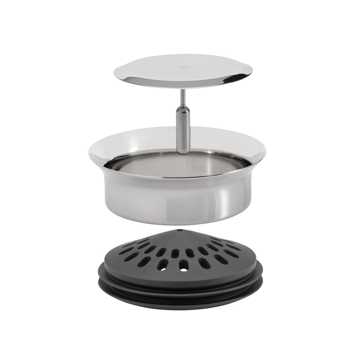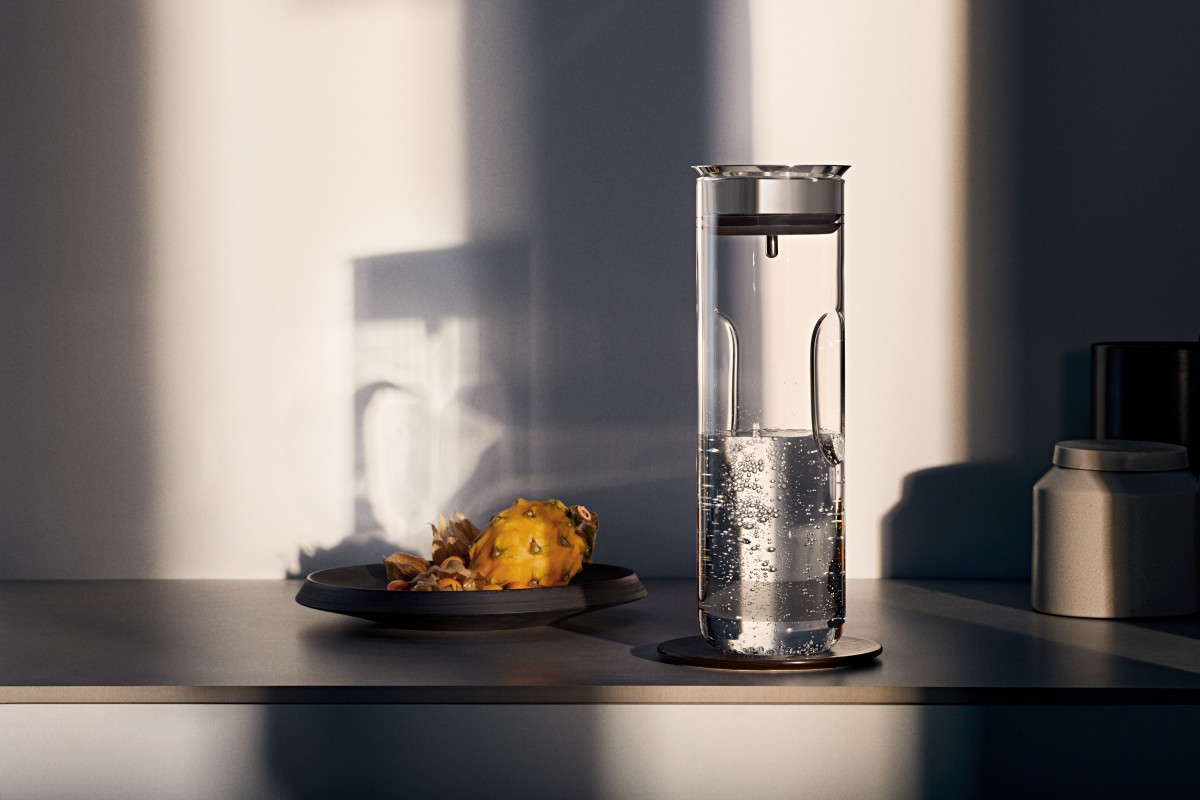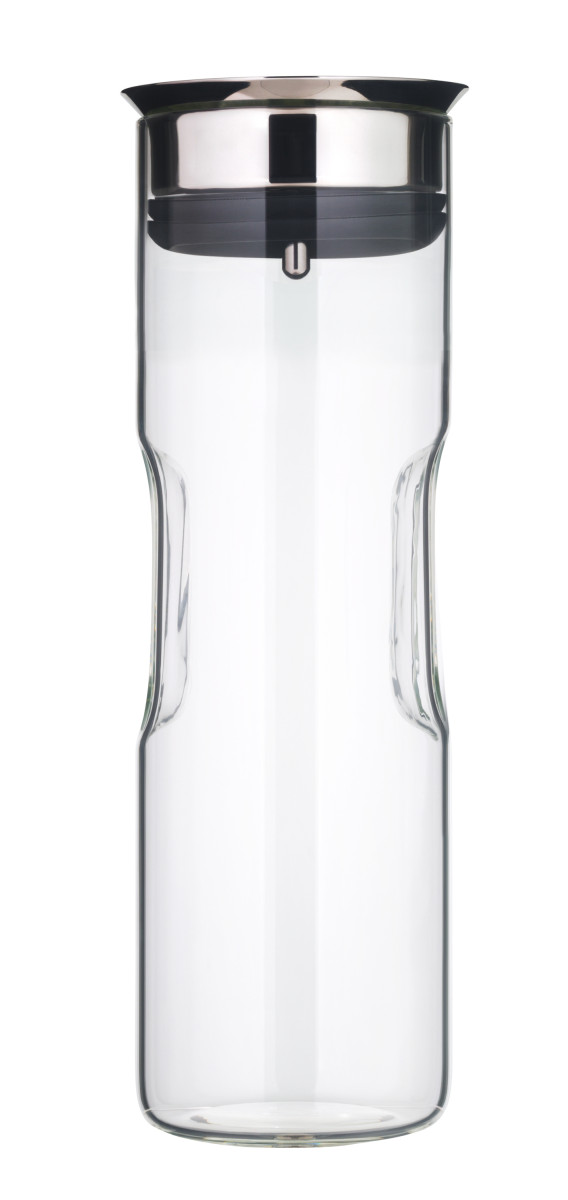 Preisgekröntes Design und höchste Funktionalität machen aus der Motion Wasserkaraffe mit 1,25 Litern Volumen von WMF einen alltagstauglichen Hinkucker auf jedem Tisch und in jedem Ambiente. Ob Getränke mit oder ohne Kohlensäure, ob eiskalt oder richig heiß, ob mit zugegebenen Früchten und Kräutern: Der clevere CloseUp-Verschlussdeckel öffnet und schließt sich automatisch, sorgt für tropffreies Servieren und verfügt dazu über ein integriertes Sieb, das beispielsweise Fruchtstücke zuverlässig in der Flasche hält. Dank praktischer Griffmulden liegt die Wasserkaraffe dabei ergonomisch perfekt in der Hand, der breite Flaschenhals erleichtert das Befüllen und Reinigen. Und nicht zuletzt passt die Motion Wasserkaraffe problemlos in das Getränkefach nahezu jedes handelsüblichen Kühlschranks.. Alte Art. Nr.: 0651036040 · CloseUp-Verschlussdeckel - Der clevere CloseUp-Verschlussdeckel öffnet und schließt sich automatisch und ermöglicht so ein gezieltes, tropffreies Ausgießen, während ein integriertes Sieb Eis und andere Zutaten zuverlässig zurückhält. · Preisgekröntes Design - Das preisgekrönte Design mit den ergonomischen Griffmulen für komfortables Handling machen die Wasserkaraffe zu einem alltagstauglichen Hinkucker auf jedem Tisch. · Integriertes Sieb - Der Deckel ist komplett zerlegbar und spülmaschinengeeignet und verfügt über ein integriertes Sieb, das zugegebene Eiswürfel oder Früchte beim Servieren zuverlässig zurückhält. · Platzsparend - Die Motion Wasserkaraffe passt zur Aufbewahrung in das Getränkefach nahezu jedes handelsüblichen Kühlschranks. · Hitzebeständiges Glas - Dank des hitzebeständigen Materials ist die Wasserkaraffe auch für Heißgetränke geeignet. · Einfach zu befüllen und zu reinigen - Dank des breiten Flaschenhalses und des spülmaschinengeeigneten Materials ist die Karaffe sehr einfach zu befüllen und mühelos hygienisch zu reinigen.