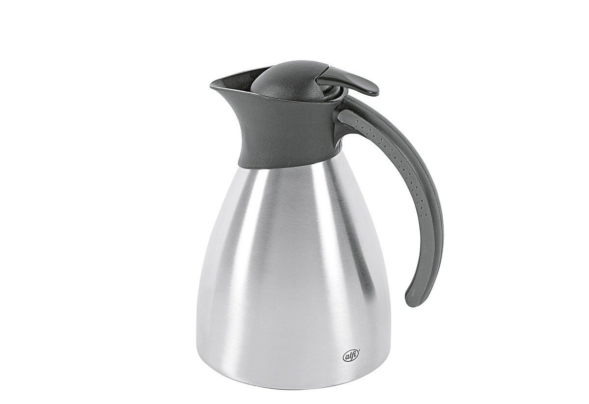 Was für das Auge gilt, gilt auch für den Gaumen: Bono tut einfach gut. Das charmante Zusammenspiel zwischen dem Edelstahlkörper und den schwarzen Kunststoffelementen - Griff und Ausgusssystem macht die Premium-Kanne zu einem echten Hingucker. Als alfi-Original besticht sie durch hervorragende Isolierleistung. Ob Kaffee, Tee oder Erfrischungsgetränke, Bono hält den Kanneninhalt 12 Stunden heiß oder 24 Stunden kalt. Dabei bewahrt das AromaSafe-Prinzip das Wichtigste überhaupt - den Genuss in all seinen Facetten. Die unkomplizierte Handhabung, die leichte Pflege und absolute Robustheit versprechen echten Nutzerkomfort ganz ohne Risiko. Um einen nachhaltig gesunden Genuss sicherzustellen, ist diese Isolierkanne wie jedes Produkt aus dem Hause alfi frei von Schadstoffen jeder Art. Edelstahl mattiert | doppelwandiger, vakuumgepumpter Edelstahlkörper | Einhand-Ausgießtaste