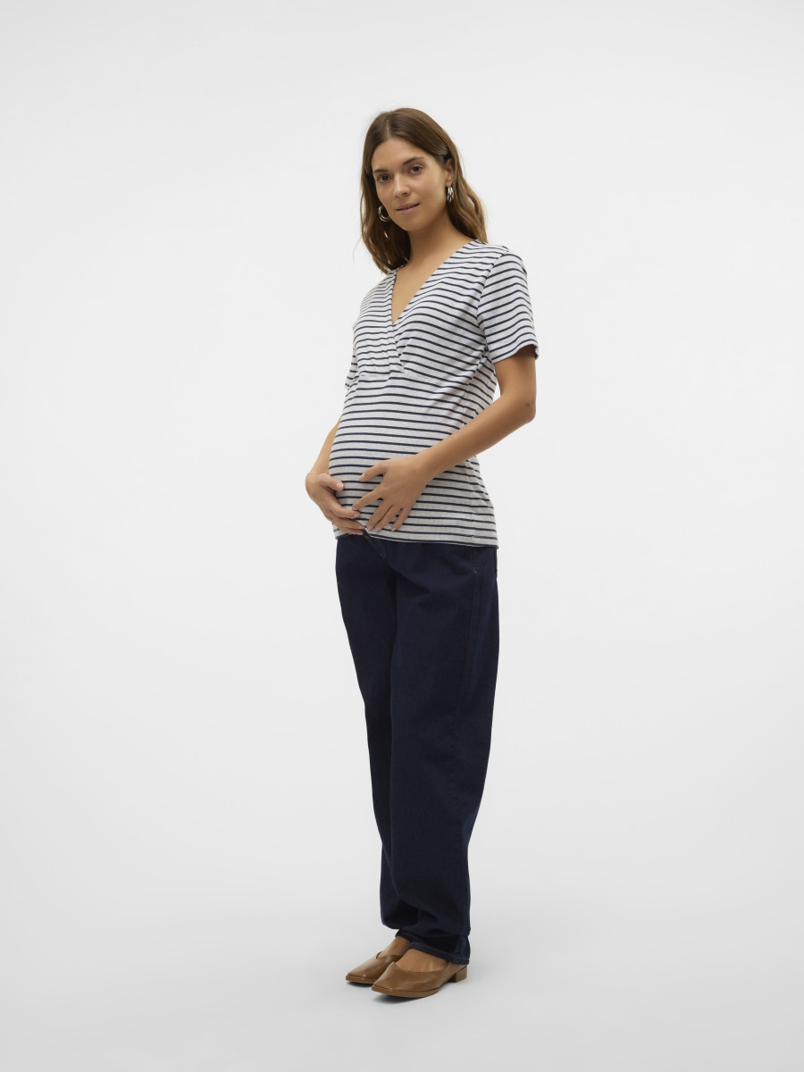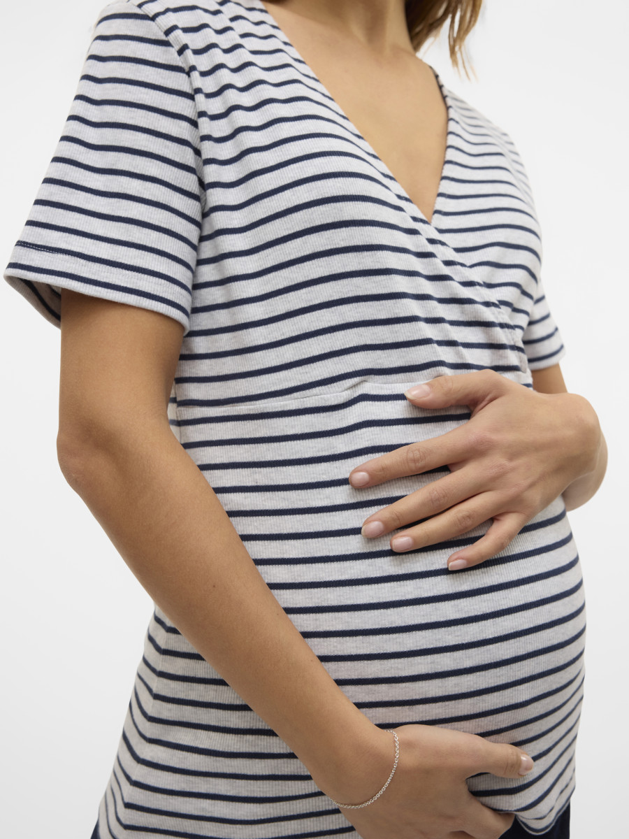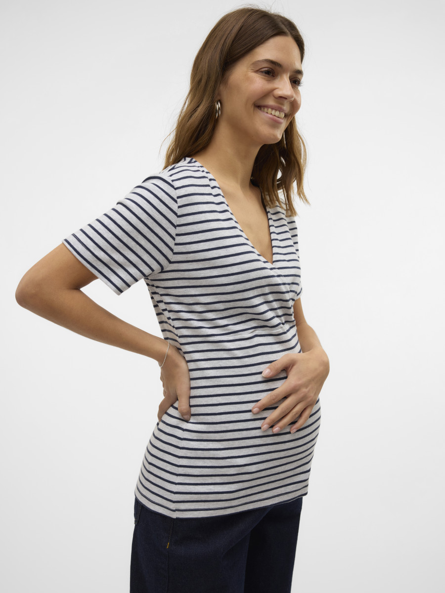 Frische deine Garderobe auf mit weichen und schicken 2-in-1 T-Shirts und Tops für Schwangerschaft und Stillzeit. - Produkttyp : Bluse - Hals : V-Ausschnitt - Ärmel : Kurzarm - Details : Stilllage unter einem Wickeleffekt - Passform : Normal geschnitten