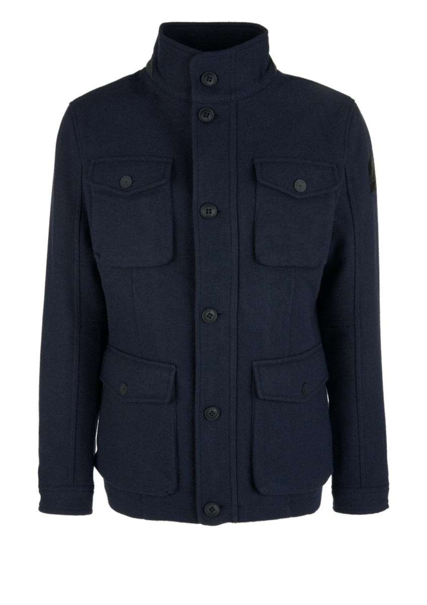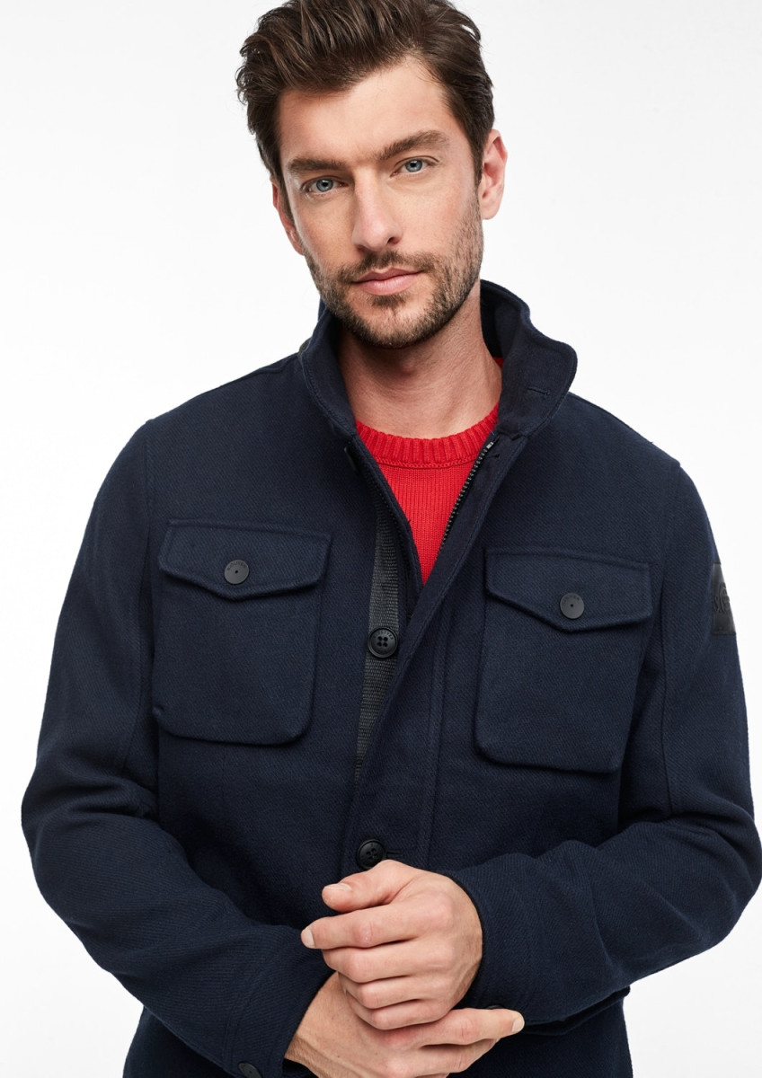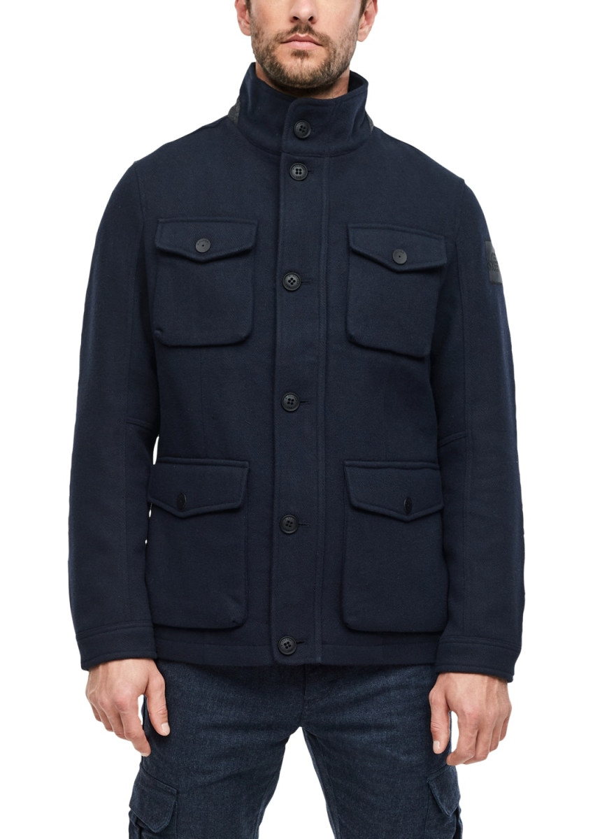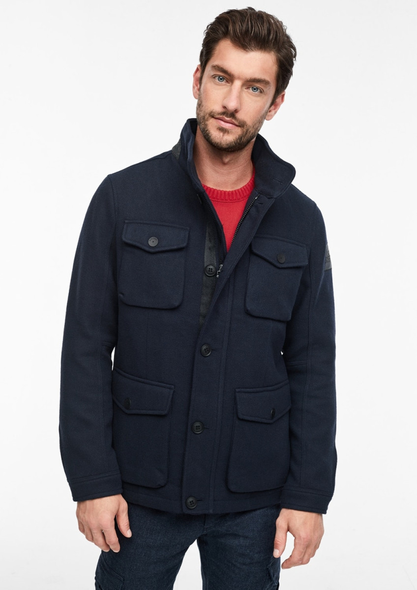 gefütterte Webjacke mit Stehkragen , Front-Reißverschluss mit Knopfblende, vier Außentaschen mit Klappe und Knopf; eine Innentasche mit Reißverschluss, weitenverstellbare Druckknopf-Manschetten, Regular Fit; Rückenlänge bei Größe L ca. 75 cm, softe Qualität aus Wollmix; glatt gefüttert und leicht wattiert