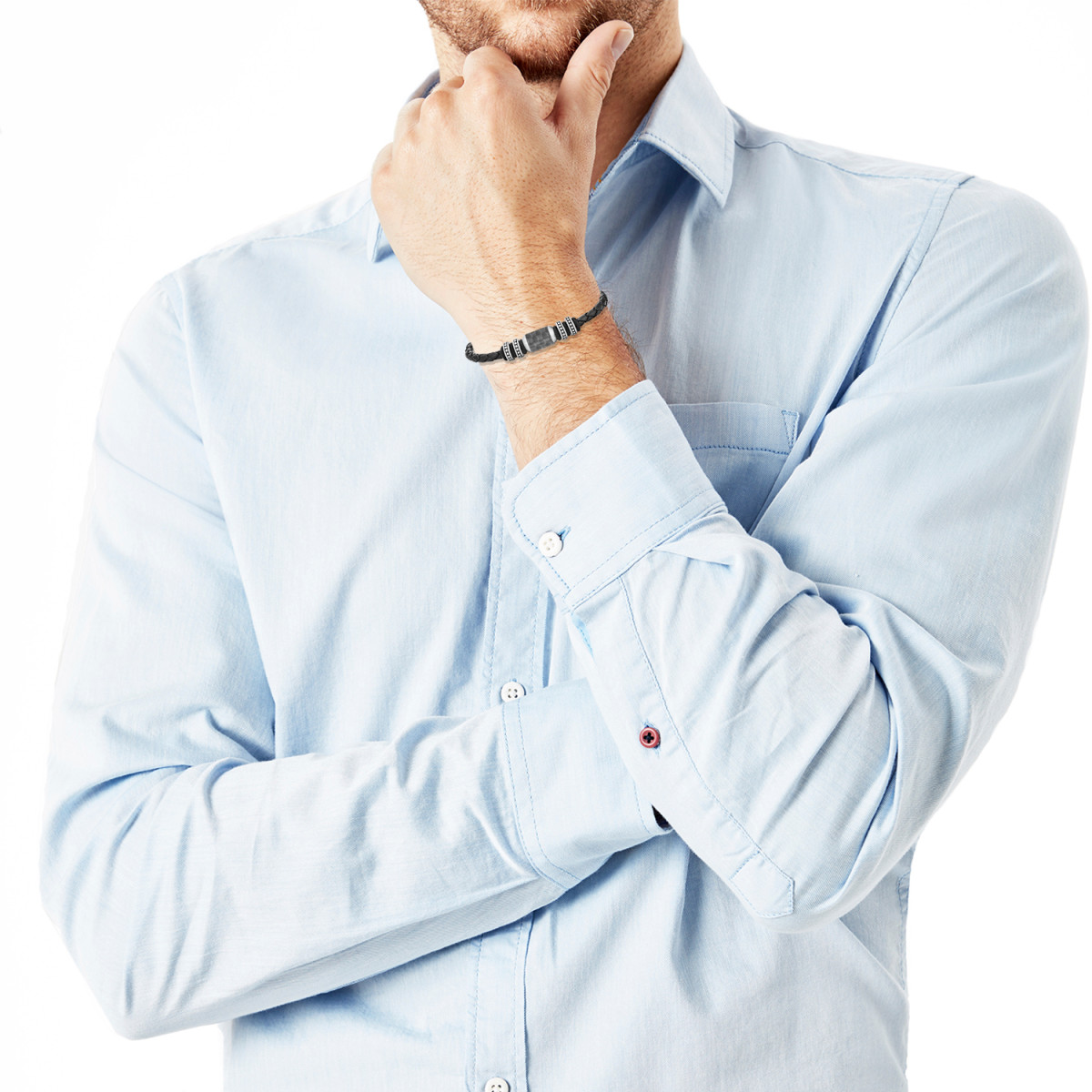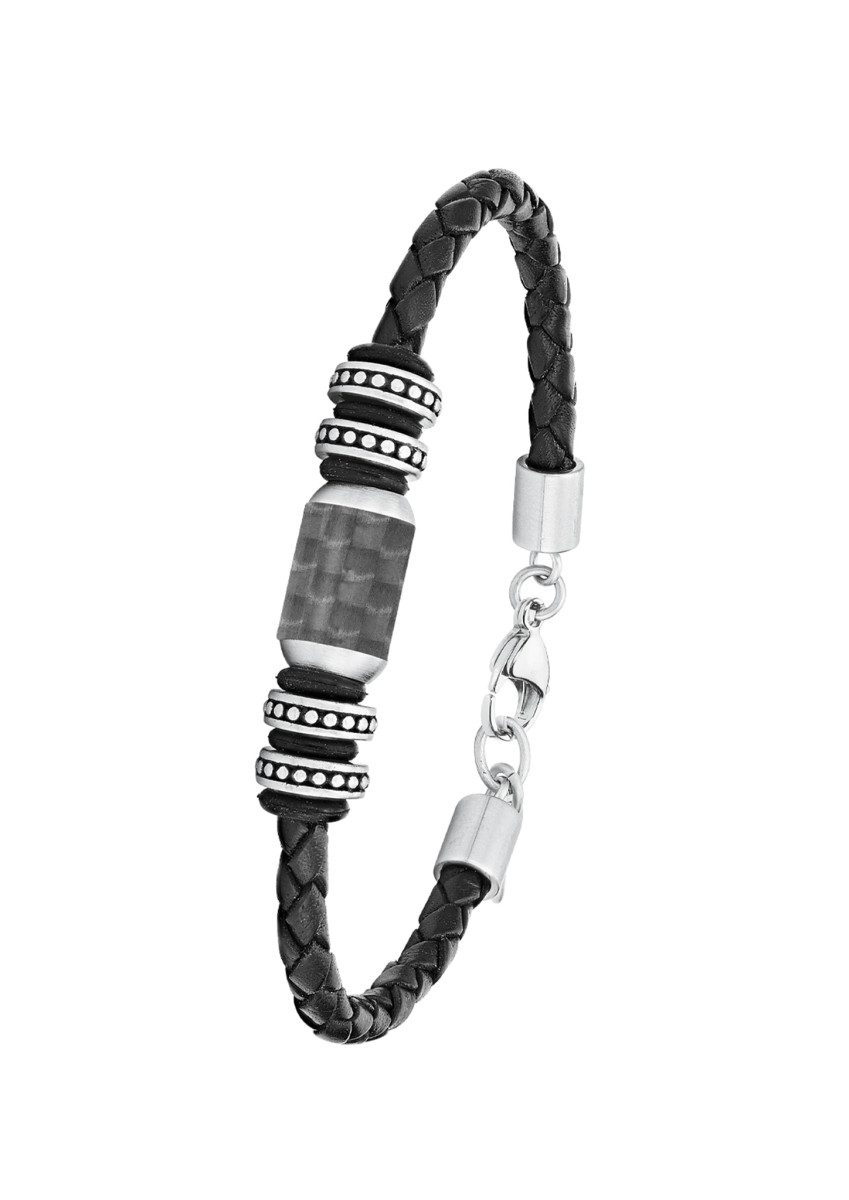 Ein Armband für trendbewusste Herren: absolut top modern ist dieses Modell von s.Oliver Echtschmuck. Das Armband ist aus tiefschwarzem Rindsleder gefertigt. Die Ausführung aus schmalem Band in Flechtoptik überzeugt einfach! Einzelne Elemente bestehen aus hochwertigem Edelstahl sowie Carbon und sind stimmig in die Kette eingearbeitet. Diese lässt sich mit einem Karabinerverschluss zudem in der Länge verstellen (20+2 cm). Schwarzes Leder sowie Carbon- und Edelstahlbeads zeichnen dieses ausgefallene Armand in mehrreihiger Ausführung aus. Ein besonderer Hingucker am Arm eines jeden Mannes!. Oberfläche: matt | Anzahl Teile: 1 | Sonstige Materialien: Carbon/Leder | Verschluss: Karabinerverschluss